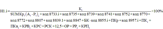 ПКi - операции с повышенными коэффициентами риска (сумма кодов 8731, 8737, 8809.i, 8814.i, 8816, 8818.i, 8820, 8822, 8824.i, 8826.i, 8828.i, 8830.i, 8832, 8834.i, 8836.i, 8838 за вычетом кода 8856.i). Показатель ПКi используется при расчете нормативов достаточности капитала банка. Значения показателя ПКi рассчитываются отдельно для каждого норматива достаточности капитала банка: - для норматива Н1.1,
