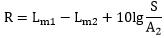 - средние уровни звукового давления в помещении и снаружи, перед испытуемым ограждением соответственно, определяемые по формуле (1), дБ.