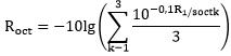 9.1.9. При необходимости значения звукоизоляции в октавных полосах частот , дБ, рассчитывают по значениям звукоизоляции, определенным в третьоктавных полосах частот, входящих в рассматриваемую октавную полосу,