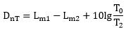 3.10. Стандартизированная разность уровней звукового давления , дБ: разность средних уровней звукового давления, создаваемых в двух помещениях одним или несколькими источниками шума, установленными в одном из них, определяемая с учетом звукопоглощения в помещении низкого уровня и приведенная к стандартному времени реверберации, равному 0,5 с.