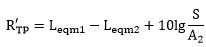 3.9. Приведенная разность уровней звукового давления , дБ: разность средних уровней звукового давления, создаваемых в двух помещениях одним или несколькими источниками шума, установленными в одном из них, определяемая с учетом звукопоглощения в помещении низкого уровня и приведенная к стандартной эквивалентной площади звукопоглощения 10 кв. м.