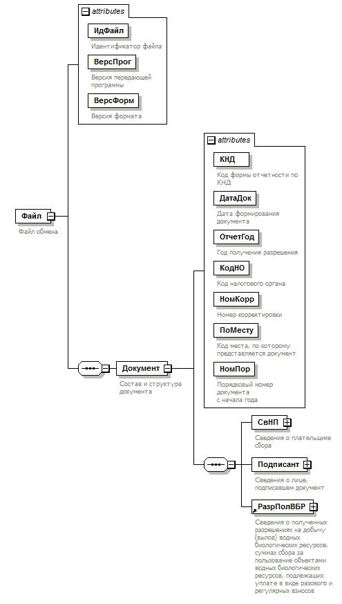| Сведения о суммах сбора в бюджет по кодам водных биологических ресурсов | СумСборВБР | С | ОМ | Состав элемента представлен в таблице 4.12 |