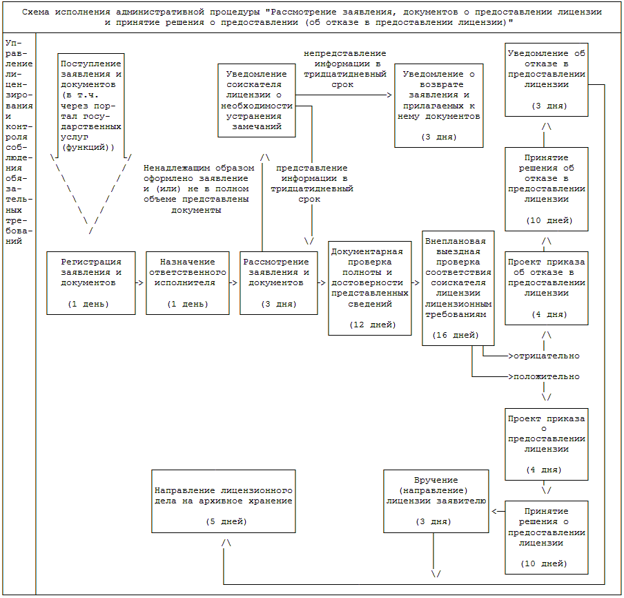 1) принятие решения о предоставлении (об отказе в предоставлении) лицензии - 45 (сорок пять) рабочих дней со дня поступления в Росздравнадзор (территориальные органы Росздравнадзора) надлежащим образом оформленного заявления о предоставлении лицензии и документов (сведений), предусмотренных пунктом 20 Административного регламента;