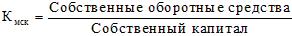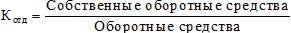 14. Коэффициент обеспеченности текущей деятельности собственными оборотными активами () характеризует отношение собственных оборотных средств юридического лица к величине его оборотных средств и рассчитывается по формуле: