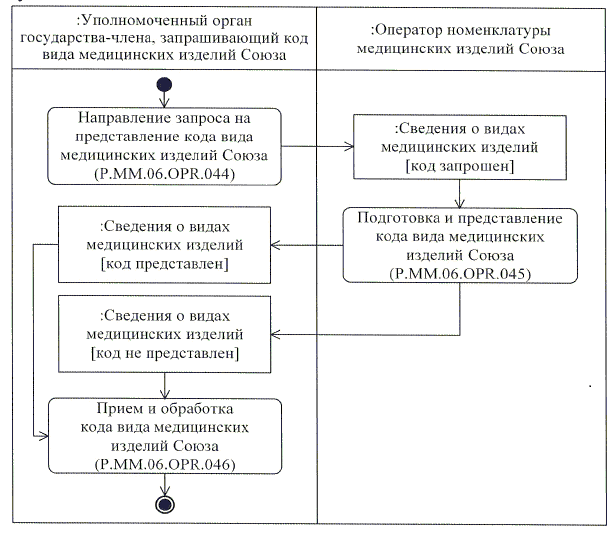 | P.MM.06.ACT.006 | уполномоченный орган государства-члена, запрашивающий код вида медицинских изделий Союза | уполномоченный орган (экспертная организация) государства-члена, который запрашивает код вида медицинских изделий Союза у оператора номенклатуры медицинских изделий Союза |