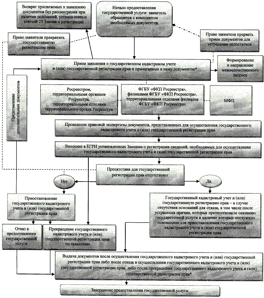 БЛОК-СХЕМА ПРЕДОСТАВЛЕНИЯ ГОСУДАРСТВЕННОЙ УСЛУГИ ПО ГОСУДАРСТВЕННОМУ КАДАСТРОВОМУ УЧЕТУ И (ИЛИ) ГОСУДАРСТВЕННОЙ РЕГИСТРАЦИИ ПРАВ НА НЕДВИЖИМОЕ ИМУЩЕСТВО