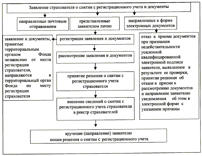 БЛОК-СХЕМА ПОСЛЕДОВАТЕЛЬНОСТИ АДМИНИСТРАТИВНЫХ ПРОЦЕДУР (ДЕЙСТВИЙ) ТЕРРИТОРИАЛЬНОГО ОРГАНА ФОНДА СОЦИАЛЬНОГО СТРАХОВАНИЯ РОССИЙСКОЙ ФЕДЕРАЦИИ ПО СНЯТИЮ С РЕГИСТРАЦИОННОГО УЧЕТА СТРАХОВАТЕЛЯ