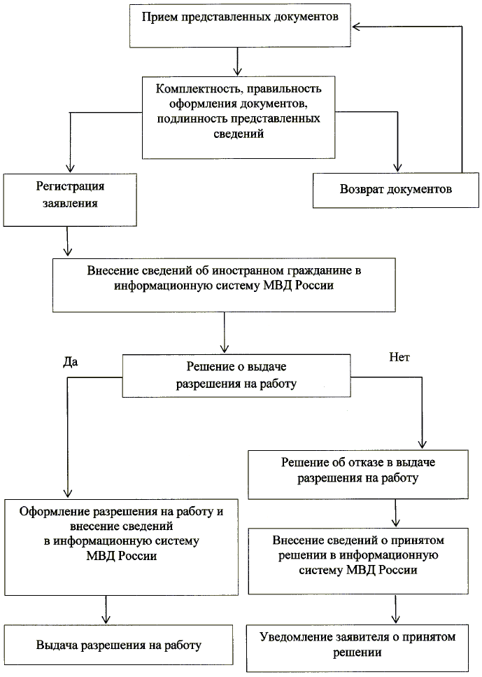 последовательности действий по оформлению и выдаче разрешения на работу иностранным гражданам и лицам без гражданства, прибывающим в Российскую Федерацию в порядке, требующем получения визы (решения об отказе в выдаче указанного разрешения)
