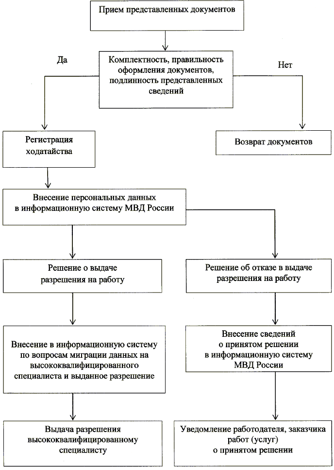 последовательности действий по оформлению и выдаче разрешения на работу высококвалифицированному специалисту (решения об отказе в выдаче указанного разрешения)