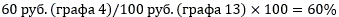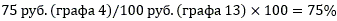 60 руб. (графа 7) / 75 руб. (графа 4) x 100 = 80%.