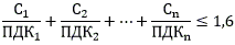 3.1. При совместном присутствии в атмосферном воздухе нескольких веществ, обладающих суммацией действия, сумма концентраций не должна превышать 1 (единицы) при расчете по формуле: