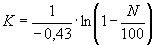 N- коэффициент ослабления светового потока по вспомогательной шкале дымомера с эффективной базой, равной 0,43 м, %.