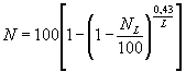 N_L -коэффициент ослабления светового потока по вспомогательной шкале дымомера с эффективной базой, равной L, %.