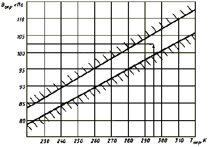 Примечание - Дымность определяют, если точка, соответствующая измеренным во время испытаний значениям атмосферного давления и температуры окружающего воздуха, находится внутри поля или на его границах.