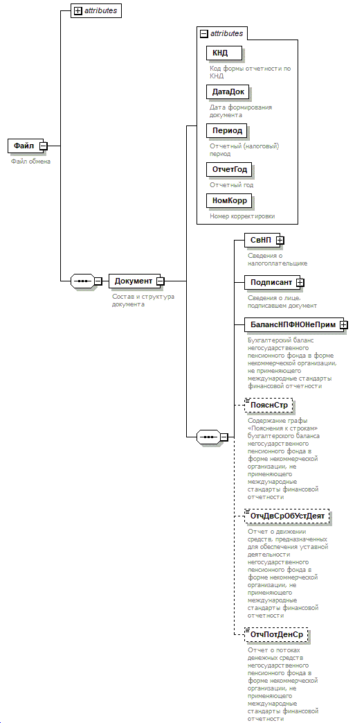 | Отчет о финансовых результатах негосударственного пенсионного фонда в форме некоммерческой организации, не применяющего международные стандарты финансовой отчетности | ОтчФинРезНПФНОНеПрим | С | | О | Состав элемента представлен в таблице 4.6 |