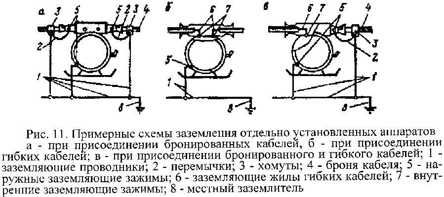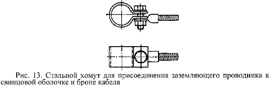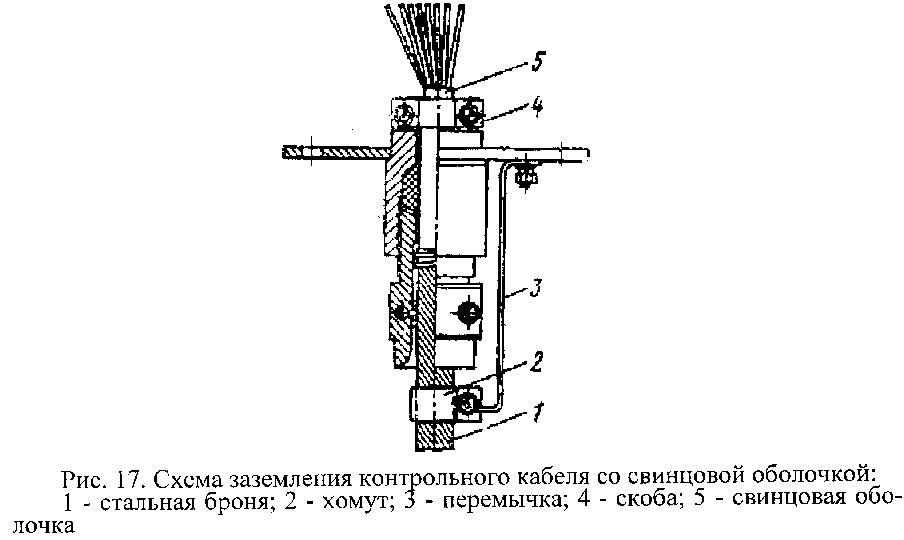 Жила заземления и проволоки металлических экранов опрессовываются одним кабельным наконечником, за исключением случаев, когда предусматривается присоединение их к устройствам для контроля целостности жилы заземления.
