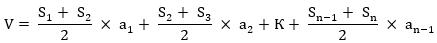 где a - расстояние между сечениями; S - площади промежуточных сечений; n - число сечений.