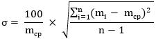 33. При взвешивании всех транспортных сосудов вычисляется коэффициент вариации (%) массы горных пород в одном сосуде по формуле: