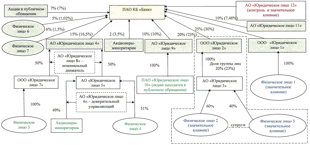 ПРИМЕР СОСТАВЛЕНИЯ СХЕМЫ ВЗАИМОСВЯЗЕЙ КРЕДИТНОЙ ОРГАНИЗАЦИИ И ЛИЦ, ПОД КОНТРОЛЕМ ЛИБО ЗНАЧИТЕЛЬНЫМ ВЛИЯНИЕМ КОТОРЫХ НАХОДИТСЯ КРЕДИТНАЯ ОРГАНИЗАЦИЯ