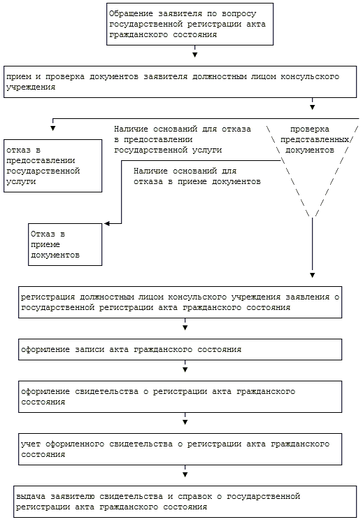 БЛОК-СХЕМЫ ПОСЛЕДОВАТЕЛЬНОСТИ ДЕЙСТВИЙ ПО ПРЕДОСТАВЛЕНИЮ ГОСУДАРСТВЕННОЙ УСЛУГИ ПО ГОСУДАРСТВЕННОЙ РЕГИСТРАЦИИ АКТОВ ГРАЖДАНСКОГО СОСТОЯНИЯ ГРАЖДАН РОССИЙСКОЙ ФЕДЕРАЦИИ, ПРОЖИВАЮЩИХ ЗА ПРЕДЕЛАМИ ТЕРРИТОРИИ РОССИЙСКОЙ ФЕДЕРАЦИИ