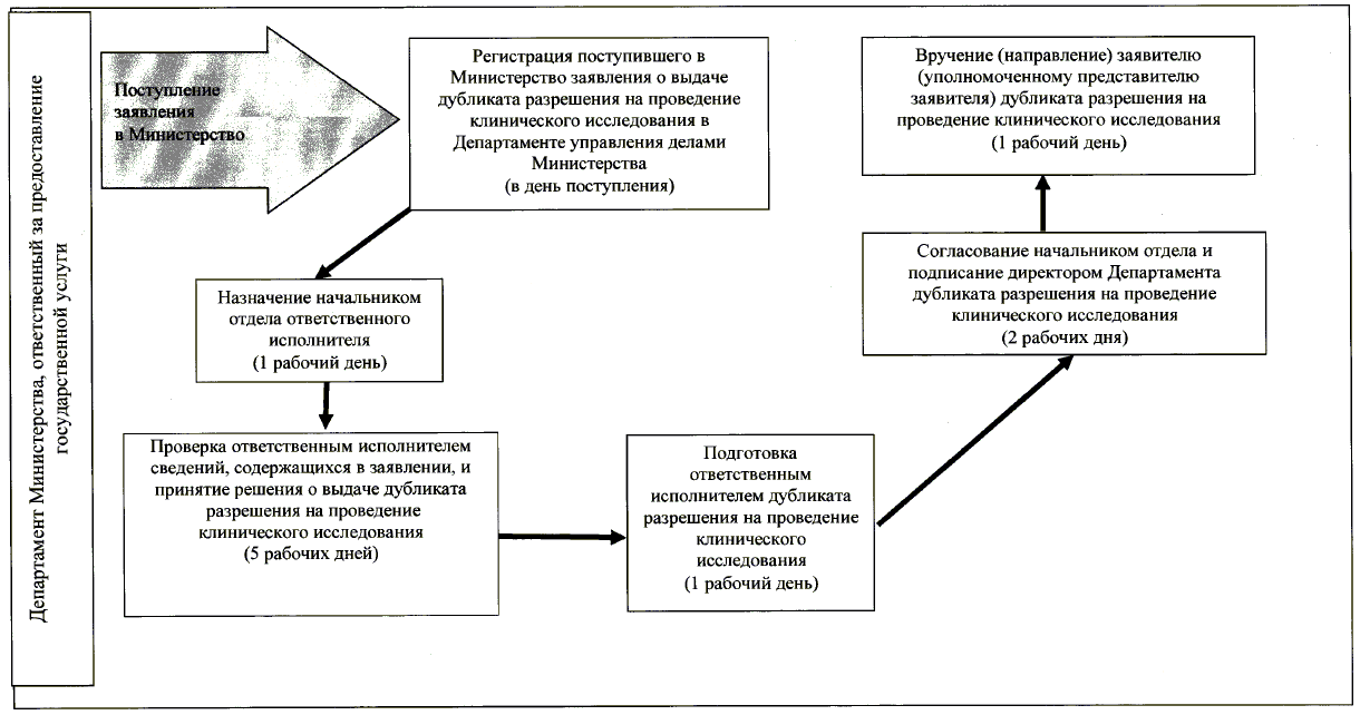 Дубликат разрешения на проведение клинического исследования согласовывается начальником отдела и подписывается директором Департамента в течение 2 (двух) рабочих дней.