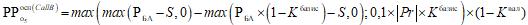 Величина процентной части рыночного риска по требованиям и обязательствам по поставке базисного (базового) актива и получению (уплате) денежных средств по приобретенному опциону типа "Call" и по проданному опциону типа "Call" рассчитывается профессиональным участником по формуле: