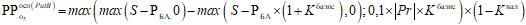 Величина процентной части рыночного риска по требованиям и обязательствам по поставке базисного (базового) актива и получению (уплате) денежных средств по приобретенному опциону типа "Put" и по проданному опциону типа "Put" рассчитывается профессиональным участником по формуле: