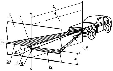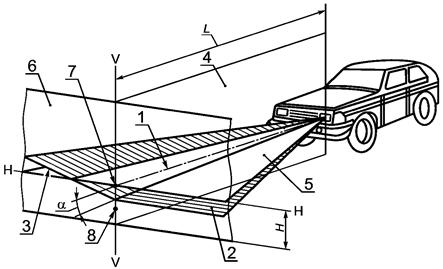 2.34 оптическая ось прибора для проверки и регулировки фар: Линия, проходящая через центр объектива прибора и точку пересечения осей V и H на экране, встроенном в прибор для проверки и регулировки фар.