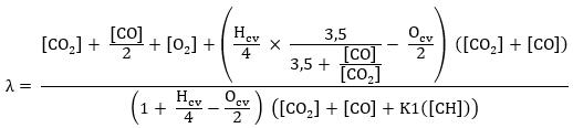 Г.1.7 Четырехканальные газоанализаторы должны автоматически рассчитывать коэффициент избытка воздуха по формуле