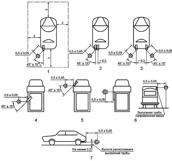 1 - 5 - установка микрофона относительно выпускной трубы в горизонтальной плоскости;