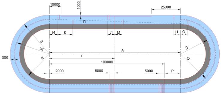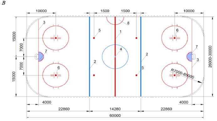 Рисунок Г.32 - Спортивная зона с разметкой для хоккея на траве