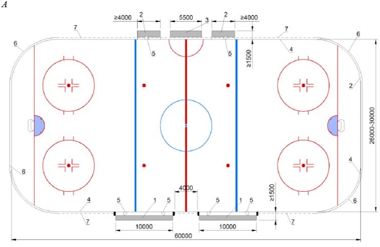 3.9 зал ледовой арены: Составная часть (помещение) ледовой арены, включающая в себя спортивную зону и места для зрителей или только спортивную зону, в случае если зал ледовой арены предназначен только для проведения тренировочных занятий и не оборудован местами для зрителей.