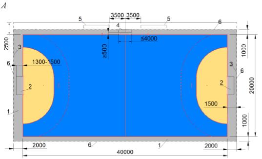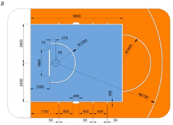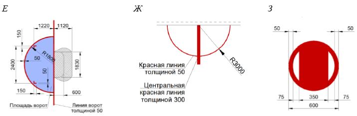 Рисунок Г.17 - Спортивная зона и разметка для футбола 5 х 5