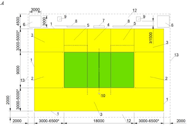 Рисунок Г.14 - Спортивная зона и разметка для волейбола сидя
