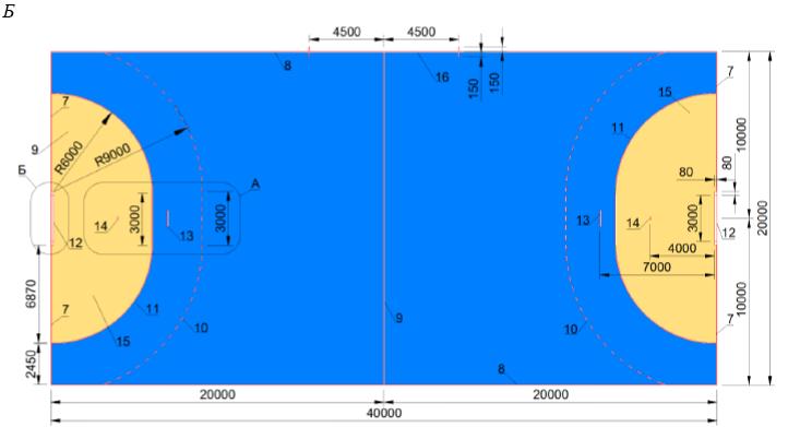 Рисунок Г.16 - Спортивная зона и разметка для регби на колясках
