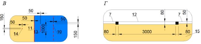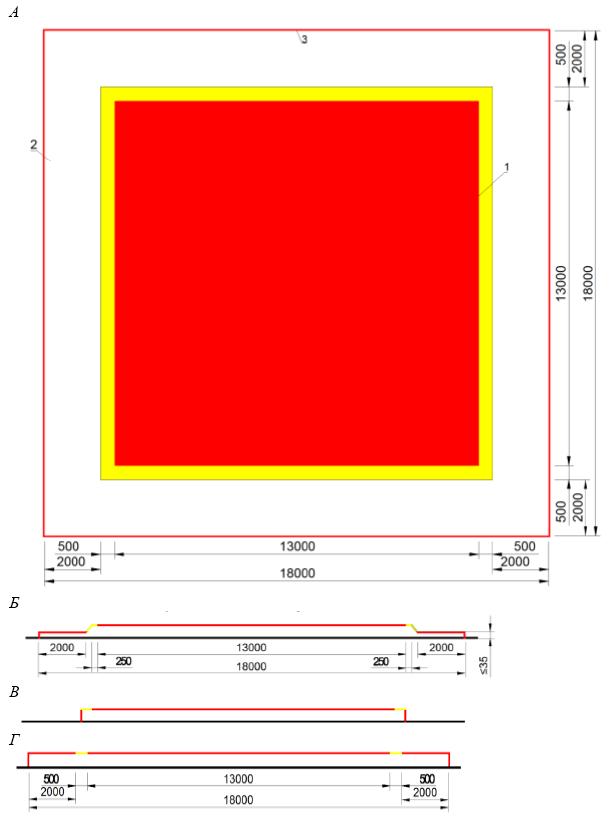 А - спортивная зона для спортивной акробатики; Б - спортивная зона для спортивной акробатики. Вариант профиля; В - спортивная зона для спортивной акробатики. Вариант профиля; Г - спортивная зона для спортивной акробатики. Вариант профиля