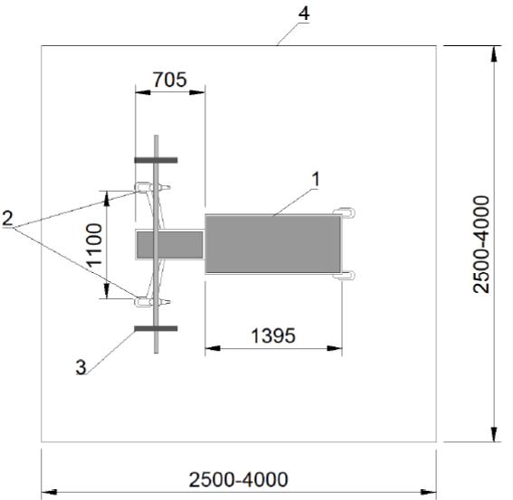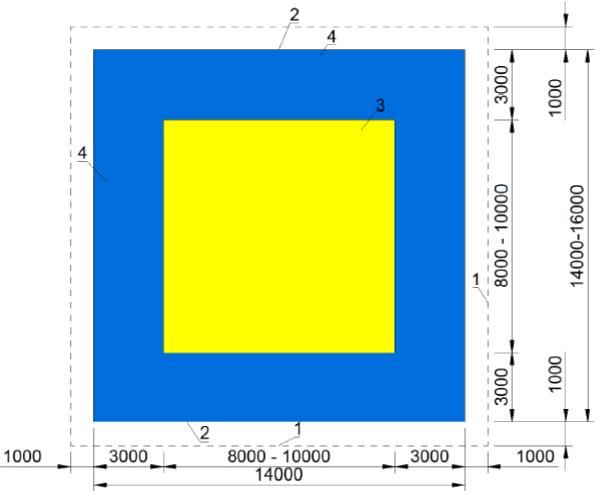 1 - границы спортивной зоны; 2 - граница татами; 3 - рабочая зона; 4 - зона безопасности