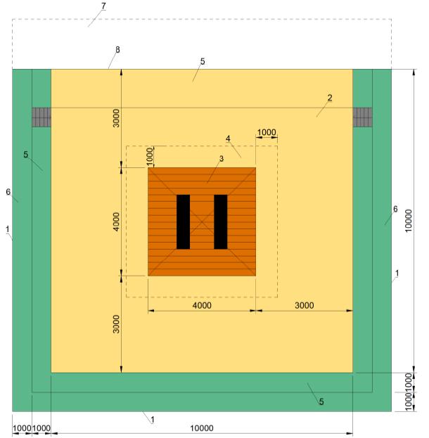 Рисунок Г.30 - Спортивная зона с разметкой для пляжного волейбола