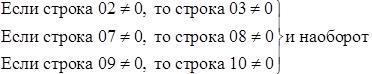 Если одна из строк 206, 207, 208 > 0, каждая из строк 201, 203, 205 > 0;
