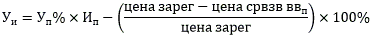 52. Величина увеличения зарегистрированной предельной отпускной цены иностранного производителя на лекарственный препарат при ее перерегистрации () (процентов) с округлением до сотых определяется по формуле: