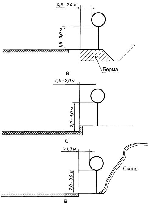 - от 1,5 до 3,0 м - при установке сбоку от проезжей части вне населенных пунктов (рисунок В.1а), от 2,0 до 4,0 м - в населенных пунктах (рисунок В.1б);