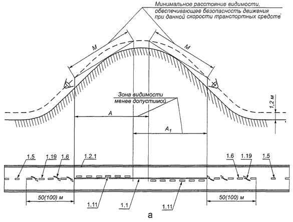 На дорогах с двухсторонним движением с двумя и более полосами для движения в данном направлении, а также на дорогах с односторонним движением с тремя и более полосами знак 5.19.1 дублируют над проезжей частью. (в ред. Изменения N 3, утв. Приказом Росстандарта от 09.12.2013 N 2221-ст)