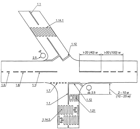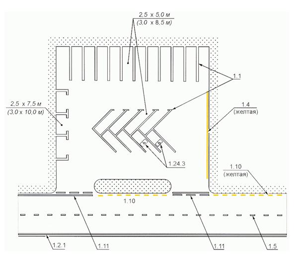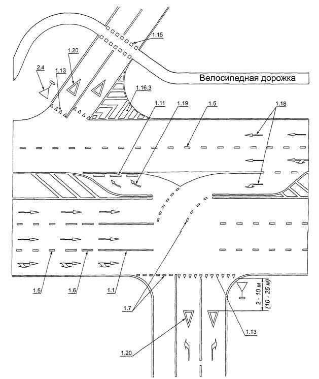 Рисунок В.21. Пример нанесения разметки 2.1.1, 2.1.3 и 2.7