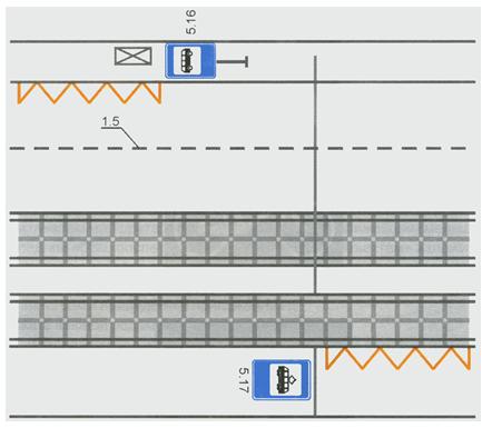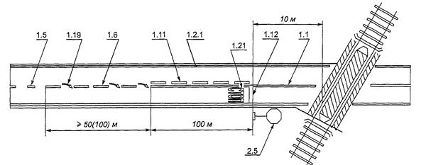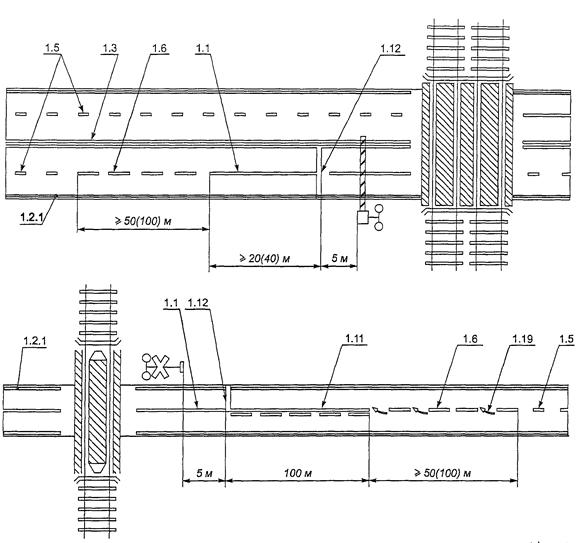 Рисунок В.17. Примеры разметки участка дороги на подъезде к железнодорожному переезду