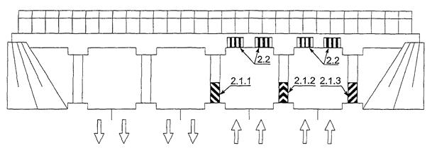 7 - массивная опора; 8 - плита мостового сооружения