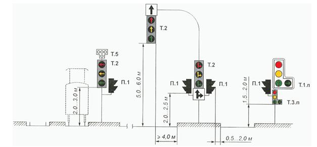 Рисунок В.23. Примеры размещения светофоров различных типов и исполнений