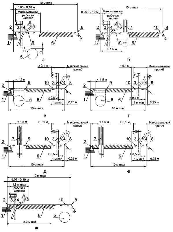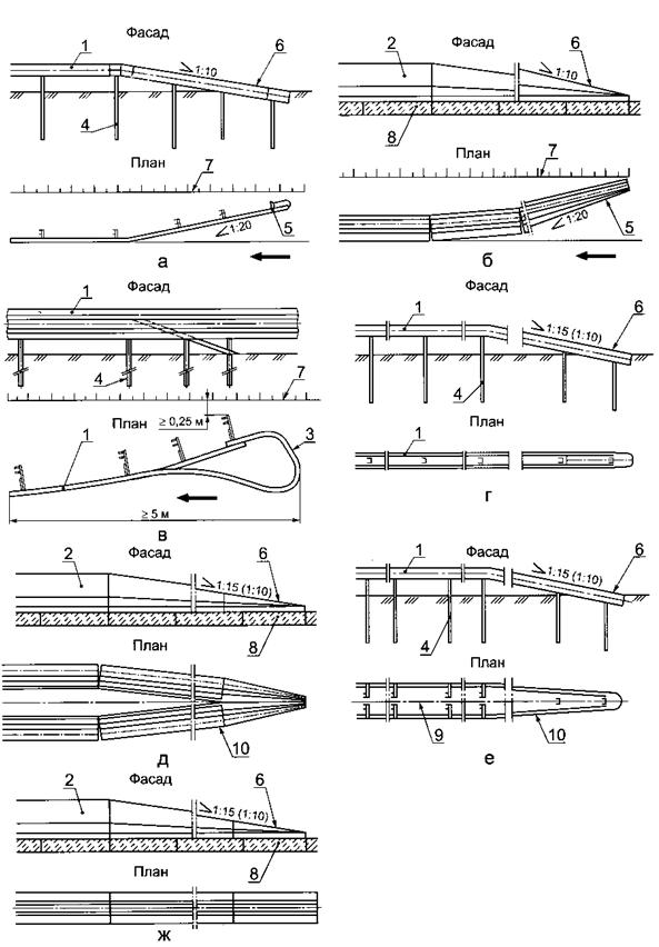 5 - отгон ограждения; 6 - понижение ограждения на начальном и конечном участках;