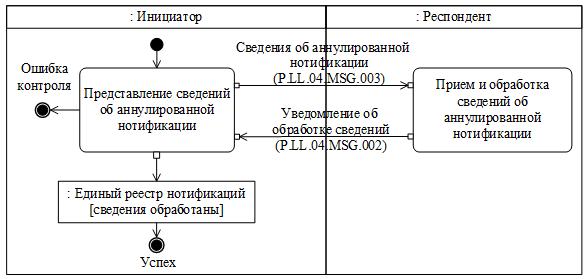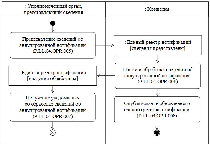 При аннулировании сведений, содержащихся в едином реестре нотификаций, выполняется процедура "Представление сведений об аннулированной нотификации" (P.LL.04.PRC.002).