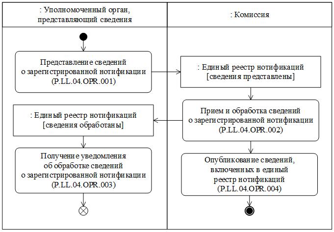 При выполнении процедур формирования и ведения единого реестра нотификаций уполномоченный орган, представляющий сведения, формирует и представляет в Комиссию сведения о зарегистрированной или аннулированной нотификации, содержащиеся в национальной части единого реестра нотификаций.