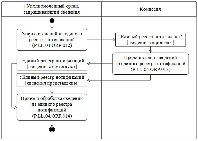 При представлении сведений уполномоченным органам, запрашивающим сведения, выполняются следующие процедуры общего процесса, включенные в группу процедур представления уполномоченным органам, запрашивающим сведения, сведений из единого реестра нотификаций: